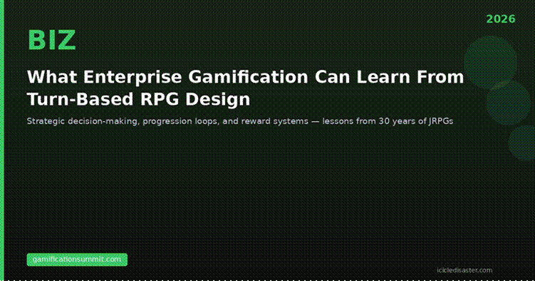 Turn-based RPGs have been solving gamification’s hardest problems for three decades: how to make complex systems feel intuitive without dumbing them down, how to sustain genuine engagement across hundreds of hours without resorting to manipulation, how to make failure feel educational rather than punishing, and how to build progression systems that feel earned rather than arbitrary. Enterprise gamification is just now catching up to design patterns that Super Nintendo games mastered in 1994.